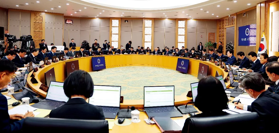 3月17日,韩国总统李在明在政府世宗办公室主持的一场国务会议。图/视觉中国